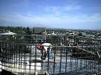 Antes de la faena del hormigón se realizan pruebas de presión en las tuberías. Luego, la superficie hormigonada se afina con polímero de alta adherencia.